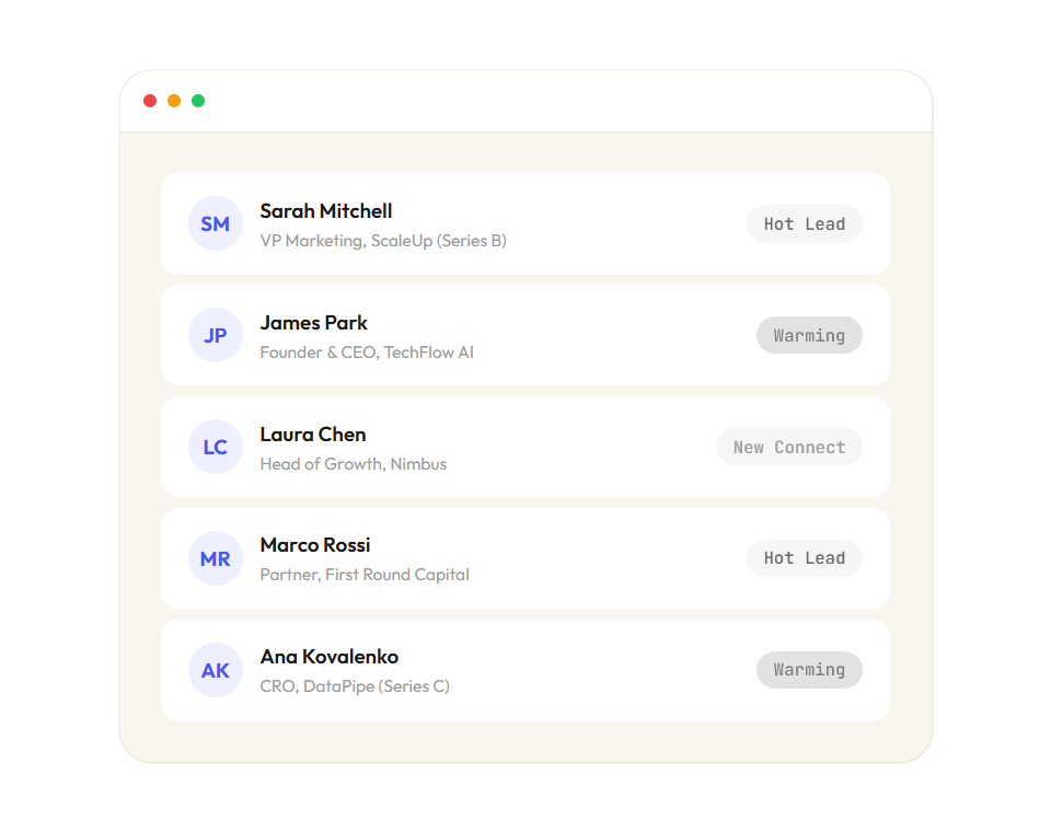 DMs start coming in. Connection requests from people you didn’t reach out to. Your strategist flags highest-value ones.